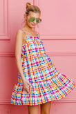 BiBi Multi Colors Plaid Sleeveless Sun Dress