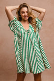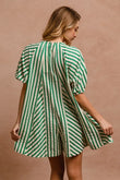 This romper showcases puffy sleeves for a touch of whimsical charm and style. The back button closure adds a unique detail and makes it easy to slip on and off. With its combination of playful design elements and practical features, this romper is perfect for a variety of occasions, from casual outings to special events where you want to look effortlessly chic.