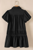 Button Down Puff Sleeve Ruffle Hem Dress