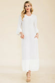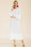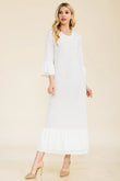 Celeste Full Size Modest Midi Dress with 3/4 Ruffle Bell Sleeves Plus Size