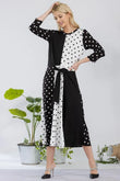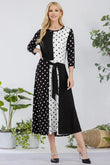 A new mixed pattern midi-dress is here to embrace you with a flowy silhouette, 3/4 sleeves, adjustable tie detail to give you some shape, and hidden side pockets! This midi-dress is perfect for the summer fall transition! Pair it with your favorite accessories, and jacket to make an effortless chic outfit!