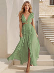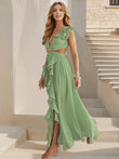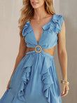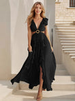 Cutout Ruffled Cap Sleeve Maxi Dress