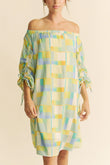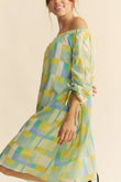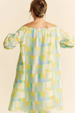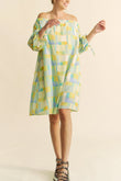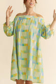 Davi & Dani Printed Off Shoulder Drawstring Sleeve Mini Dress