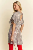 Davi & Dani Sequin Plunge Neck Knot Cut Out Tie Back Party Dress