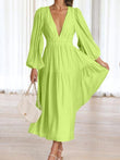 Deep V-Neck Balloon Sleeve Plain Maxi Dress