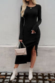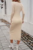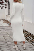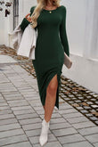 Devine Drawstring Round Neck Long Sleeve Midi Dress