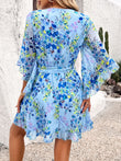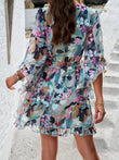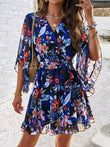 Devine Ruffled Printed Surplice Half Sleeve Mini Dress