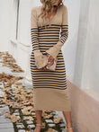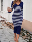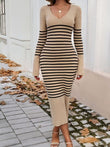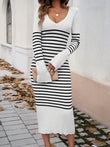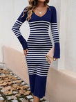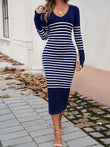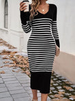 Devine Striped V-Neck Long Sleeve Sweater Dress
