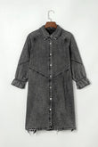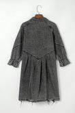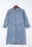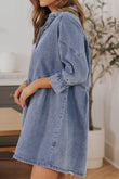Distressed Collared Neck Flounce Sleeve Denim Dress