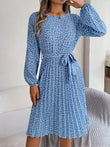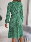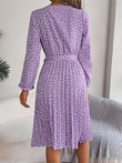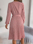 Ditsy Floral Tie Waist Pleated Dress