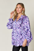 Double Take Full Size Printed Ruffle Trim Balloon Sleeve Shirt