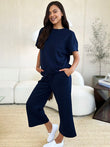 Double Take Full Size Texture Short Sleeve Top and Pants Set