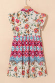 Floral Mixed Pattern Ruffle Flutter Sleeve Buttoned Dress