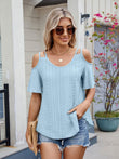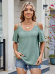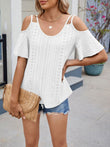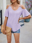 Florira Round Neck Cold Shoulder Eyelet T-Shirt