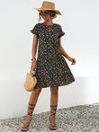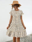 Frill Floral Round Neck Short Sleeve Tiered Dress