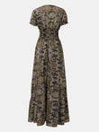 Full Size Smocked Printed V-Neck Short Sleeve Dress