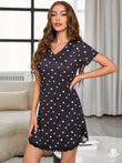 Heart V-Neck Short Sleeve Lace Trim Night Dress