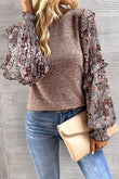 Heathered Floral Frill Lantern Sleeve Blouse