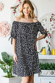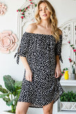 Heimish Full Size Short Sleeve Off Shoulder Animal Mini Dress Plus Size