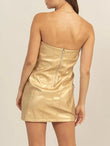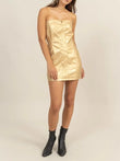 The Metallic Slip Mini Dress is a glamorous and eye-catching choice for a special occasion. The metallic fabric adds a touch of shimmer and sophistication to the dress. The slip silhouette is elegant and flattering, perfect for showcasing your figure. This mini dress is the perfect option for a night out or a formal event where you want to make a statement. Pair it with heels and minimal accessories to let the dress shine and stand out in style.