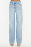The distressed high-rise straight-leg jeans are modern. Wear it with a simple top or a stylish coat for a trendy and comfortable look. Whether you're paired with sneakers or heels, you'll be confident and individual. Perfect for every occasion, you'll always be in style.