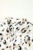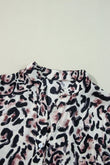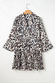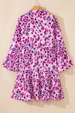 Leopard Print Buttoned Front 3/4 Sleeve Tiered Ruffled Hem Dress