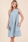 Lime 'N' Chili Denim Pintuck Detail Sleeveless Midi Dress