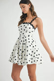 MABLE Polka Dot Mini Dress with Ricrac Trim Strap