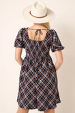 Mittoshop Checkered Print Puff Sleeve Babydoll Mini Dress