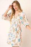 Mittoshop Flower Print Mocked Waist Mini Dress