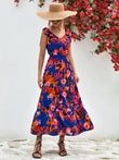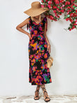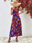 Multicolored V-Neck Backless Midi Dress