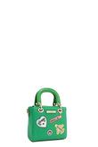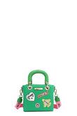 Our color patch handbag is a striking, compact statement piece with a sleek square silhouette. Vibrant travel-inspired patches and a playful crossbody strap add a pop of color and personality, letting you wear it two ways: handheld or hands-free!
