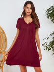 Notched Short Sleeve Mini Lounge Dress