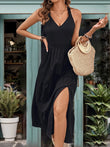 Perfee Slit Crisscross V-Neck Midi Dress