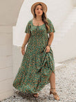 Plus Size Printed Short Sleeve Tiered Maxi Dress