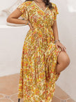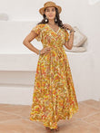 Plus Size Printed V-Neck Flutter Sleeve Tie Waist Maxi Dress