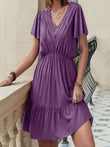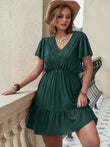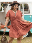 Plus Size Ruffle Hem V-Neck Short Sleeve Dress