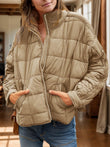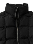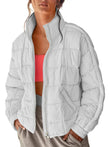 Pocketed Plaid Quilted Zip Up Winter Coat