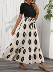 Printed Tie Waist Short Sleeve Maxi Dress