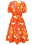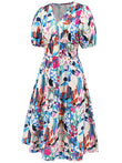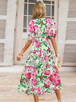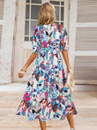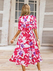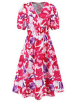 Ruched Printed Surplice Short Sleeve Dress