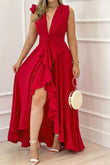 Ruffled Plunge Sleeveless Maxi Dress