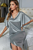 Satin Flutter Sleeve Side Slit V-Neck Night Dress