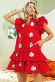 This Sequins Baseball Patch Gameday Dress is a fun and trendy choice for sports fans. With its sequin embellishments and baseball patch detail, it adds a touch of sparkle and team spirit to your wardrobe. Perfect for gameday or any casual outing, this dress is sure to make a statement!
