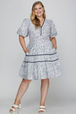 She + Sky Full Size Printed V-Neck Puff Sleeve Tiered Dress Plus Size