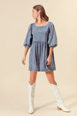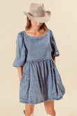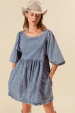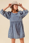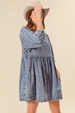 The washed and distressed mini denim dress is a trendy and edgy wardrobe piece with a laid-back vibe. The washed denim gives it a relaxed and lived-in look, while the distressed detailing adds a touch of rugged charm. This mini dress is perfect for casual outings and can be dressed up or down with the right accessories. Pair it with sneakers for a cool and effortless look, or layer it with a jacket and boots for a more urban-inspired outfit. The washed and distressed finish adds a touch of character to the dress, making it a stylish and versatile option for everyday wear.