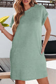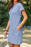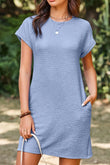 Solid Color Textured Crinkle Short Sleeve T Shirt Dress
