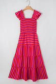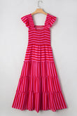 Stripe Flutter Sleeve Smocked Bodice Tiered Maxi Dress