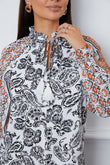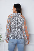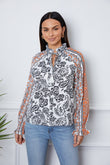 Tassel Tie Neck Printed Smocked Long Sleeve Blouse