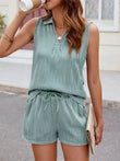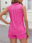 Textured Johnny Collar Top and Shorts Set