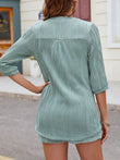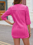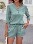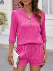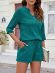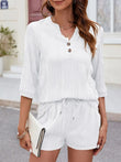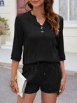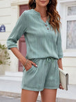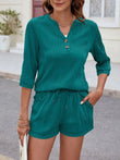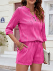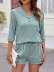 Textured Notched Top and Drawstring Shorts Set